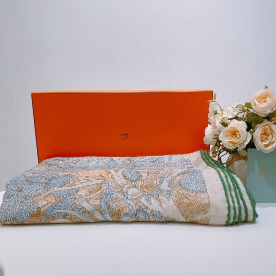 Hermes Shawl Scarf Retour A La Nature Floral Cashmere Silk Woman Auth 140cm [Unused]