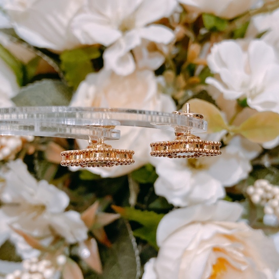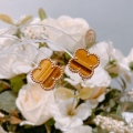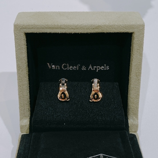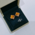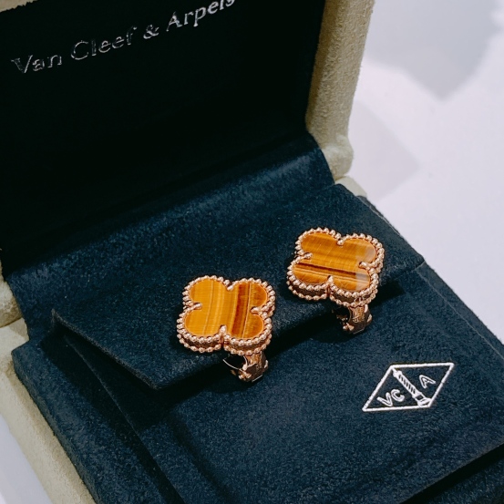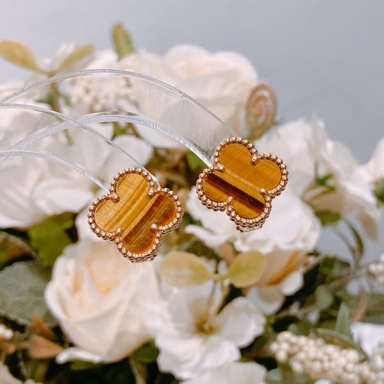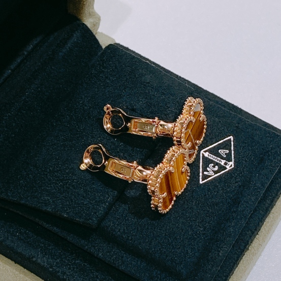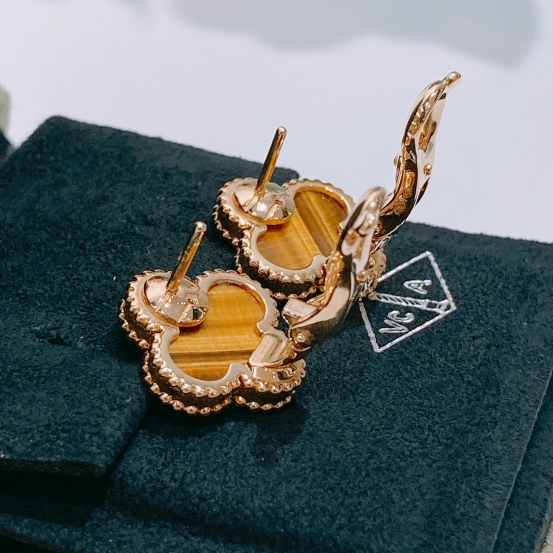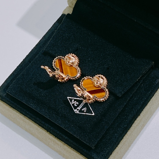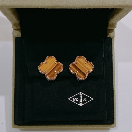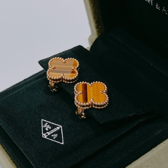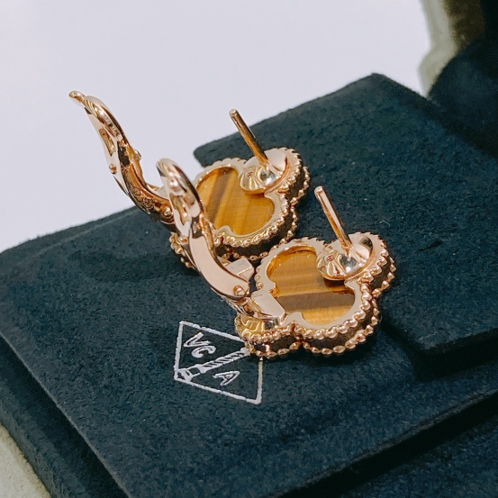 Van Cleef Arpels Vintage Alhanmbra Earrings 18K Yellow x Tiger Eye [Unused]
