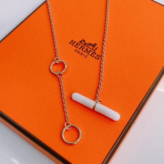 Hermes Mini Maillon Pendant Necklace Marron Glace x RGHW [New]