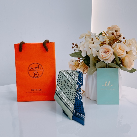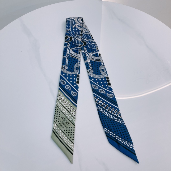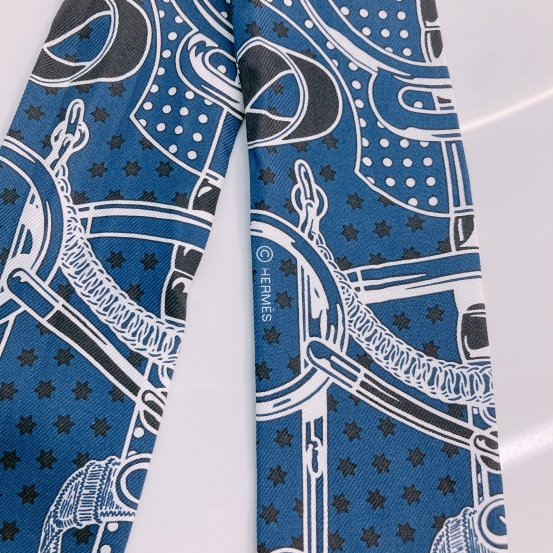 Hermes Twilly Eperon d'Or Bianco Silk Navy x White [Unused]