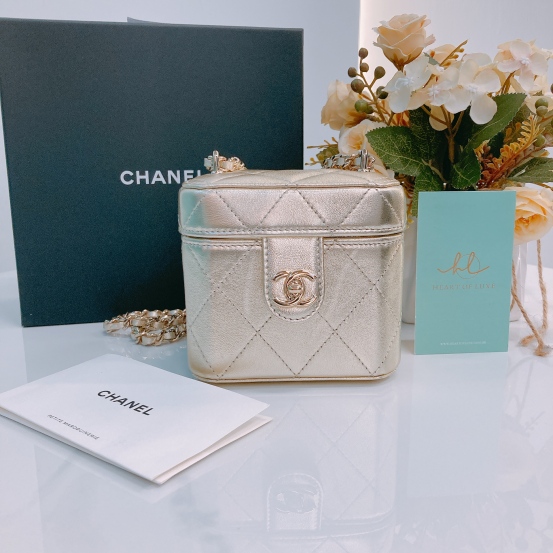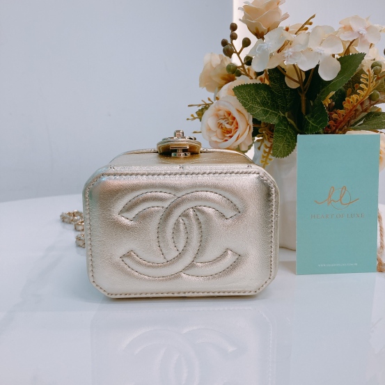 Chanel Vanity Case Mini Lambskin Metallic Gold [Pre-Owned]