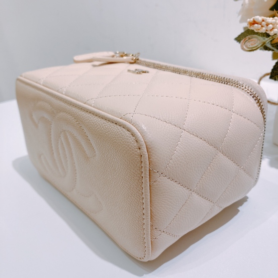 Chanel Vanity Box With Chain Caviar Beige x GHW [Pre-Owned]