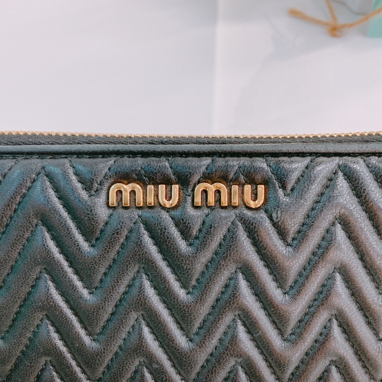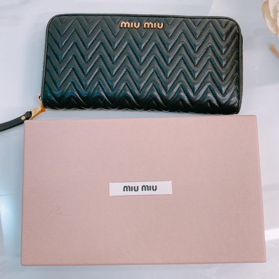 Miu Miu Matelasse Zip Around Long Wallet Black x GHW [Pre-Owned]