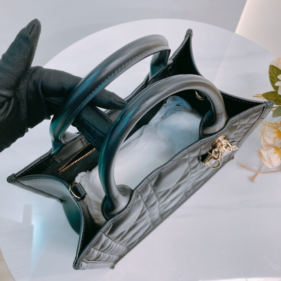 Christian Dior Book Tote Macrocannage Small Calfskin Black x LGHW [Pre-Owned]