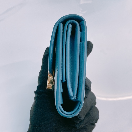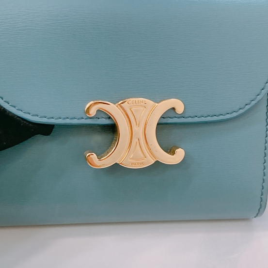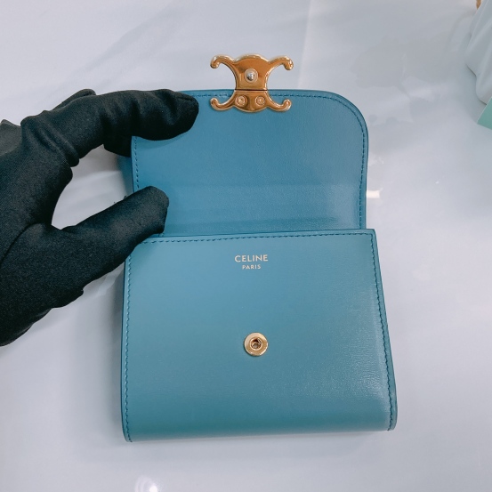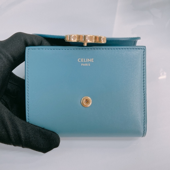 Celine Portefeuille Triomphe Wallet Blue Lambskin [Pre-Owned]