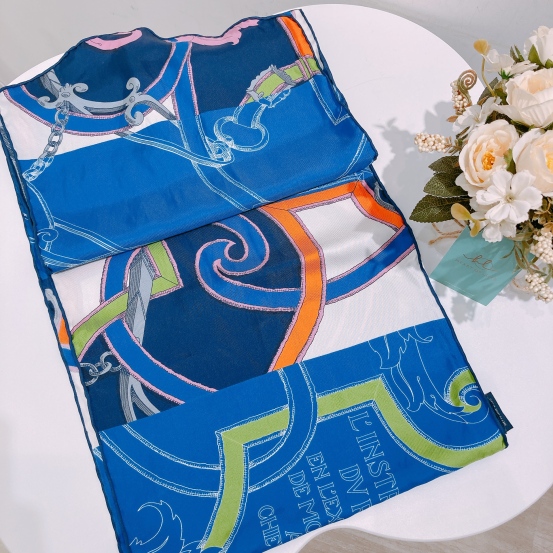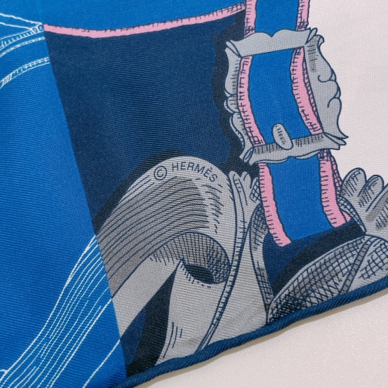 Hermes L'instruction du Roy Bayadere Silk Muffler Blue X Multi Colour[Pre-Owned]