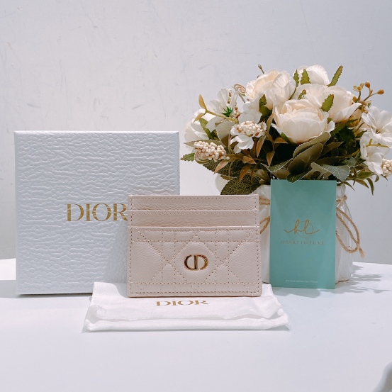 Dior Caro Freesia Card Holder Calfskin Pink x GHW [New]