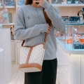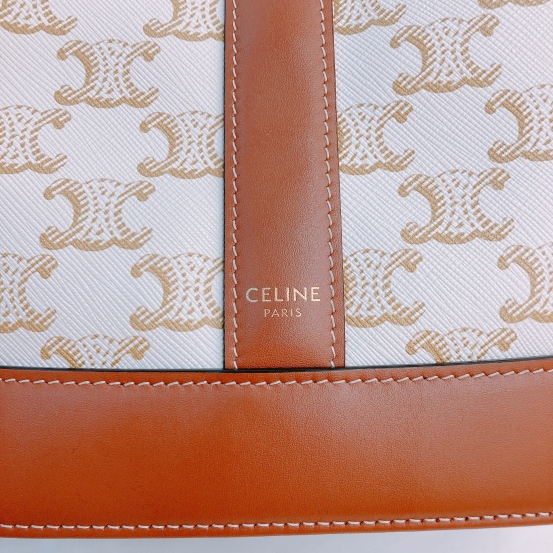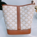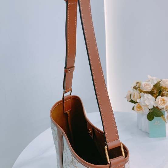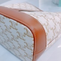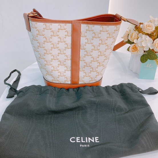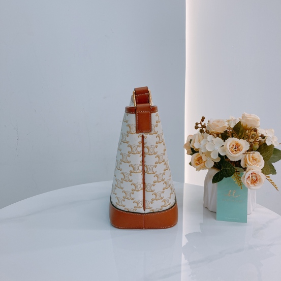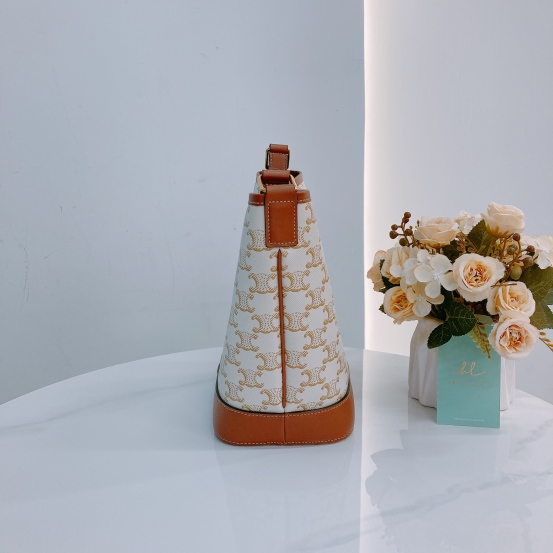 Celine Triomphe Bucket Small Calfskin and Canvas White x GHW [Pre-Owned]