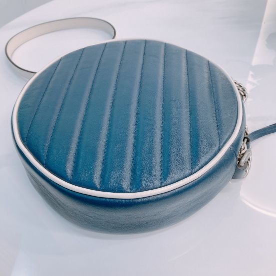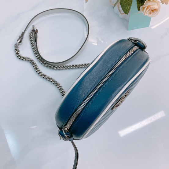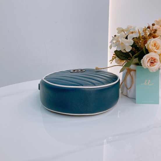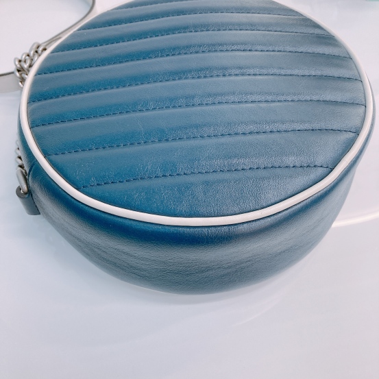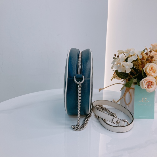 Gucci GG Marmont Round Bag Mini Calfskin Navy and White x PHW [Pre-Owned]