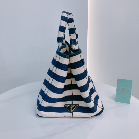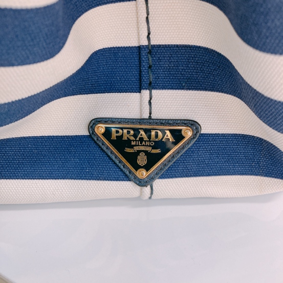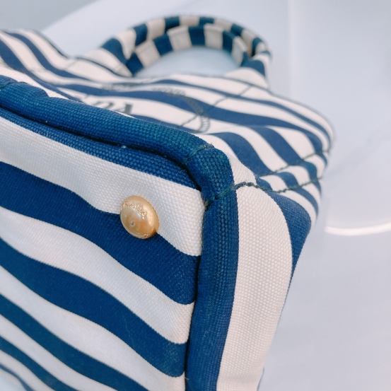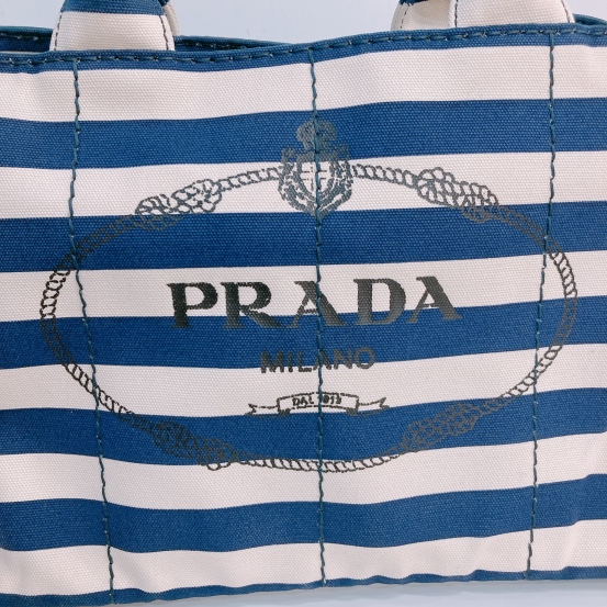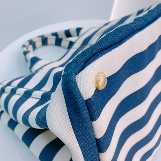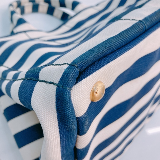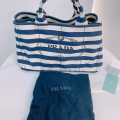 Prada Canapa Logo Handle Bag with Strap Canvas Navy x White [Pre-Owned]