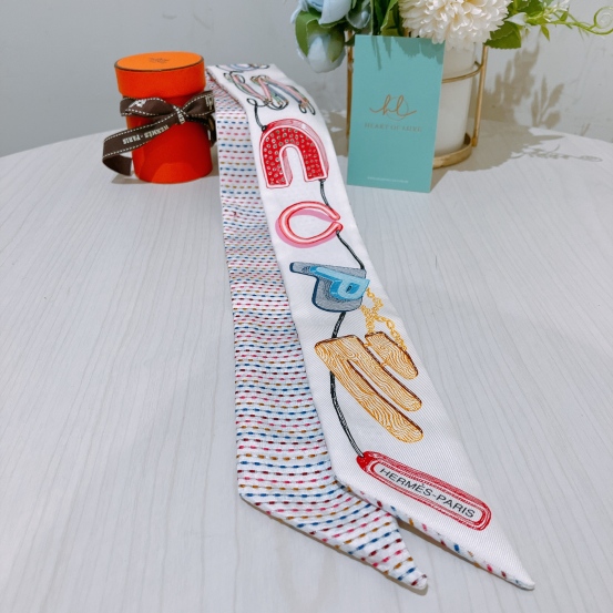 Hermes Twilly Embroidered Chevaloscope Scarf [Pre-Owned]